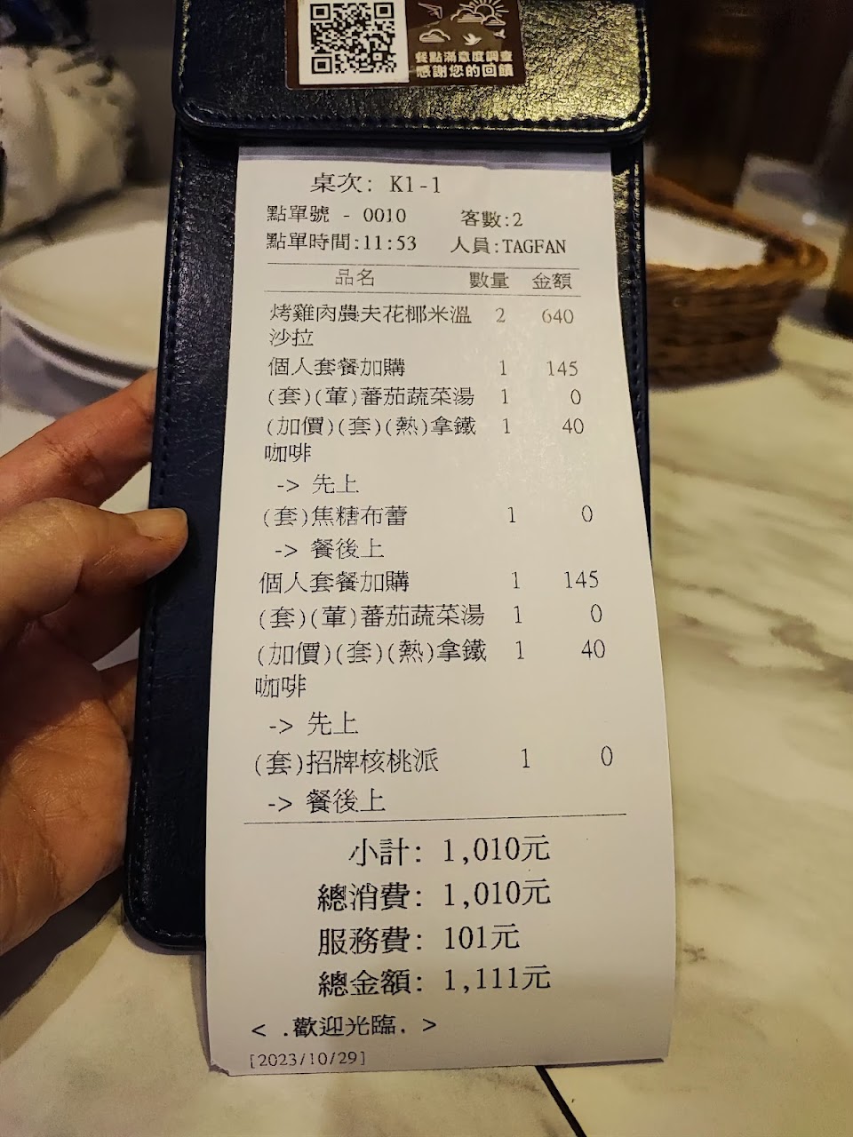 湯很好喝 主餐也不錯但光主餐就等了整整30分鐘…..真的出餐速度非常非常的慢 服務人員重複餐點的時候感覺是在趕飛機…到後面完全聽不懂?偏貴 也沒有價錢的品質 如果有第二次 不會再來台茂的分店了… …