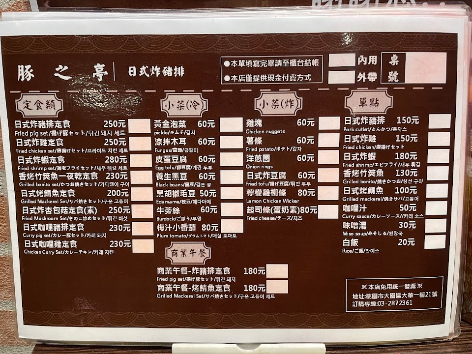 餐點豐富、美味,謝謝老闆用心的製作料理,豚之亭~真的超級推薦 ! 服務 內用 餐點類型 晚餐 平均每人消費金額 $200-400