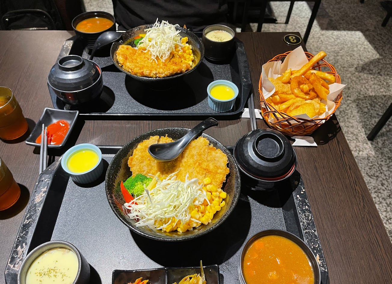 晚餐點了豬排定食與豬排咖哩,米飯軟Q好入口,豬排肉厚實,炸粉粿的滿剛好,定食豬排醬微辣開胃,附餐小菜處理很好,豆乾筍乾泡菜很入味,比起市售毛豆清淡但不影響風味(好吃?),茶碗蒸內有金針菇,湯品是味增湯,還有附餐小巧可愛的布丁,台式口感,沒有收服務費,兩套餐500元有找,CP值高,很不錯哦!