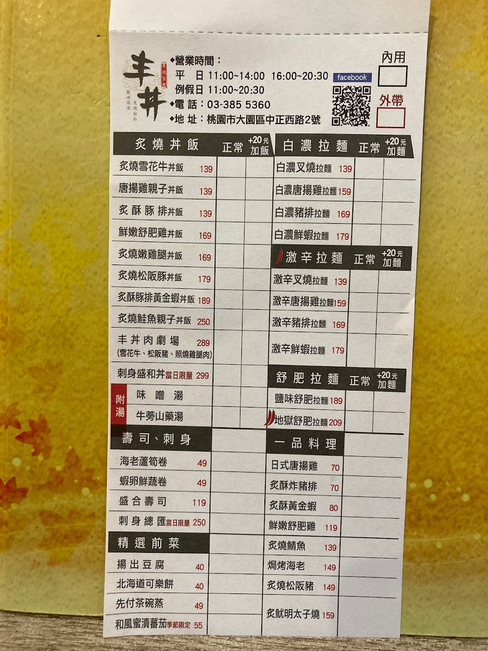 燒餃子看圖片會覺得底部焦焦應該吃起來會酥脆像鍋貼那樣,結果沒有,就像水餃ㄧ樣,整顆都軟軟的。生魚片不知是部位問題還是怎樣,沒什麼油脂。花壽司很乾,跟ㄧ般有加美奶滋的口感差很多。焗烤海老肉無法整片剝下來,剝時肉會散成ㄧ絲ㄧ絲的。其他的都還算ok,旁邊有付費停車場。