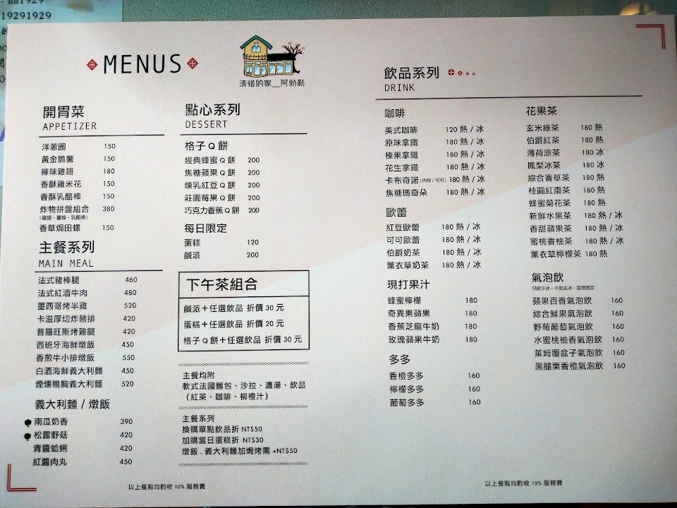 主餐 皆附沙拉 麵包 湯品 飲品