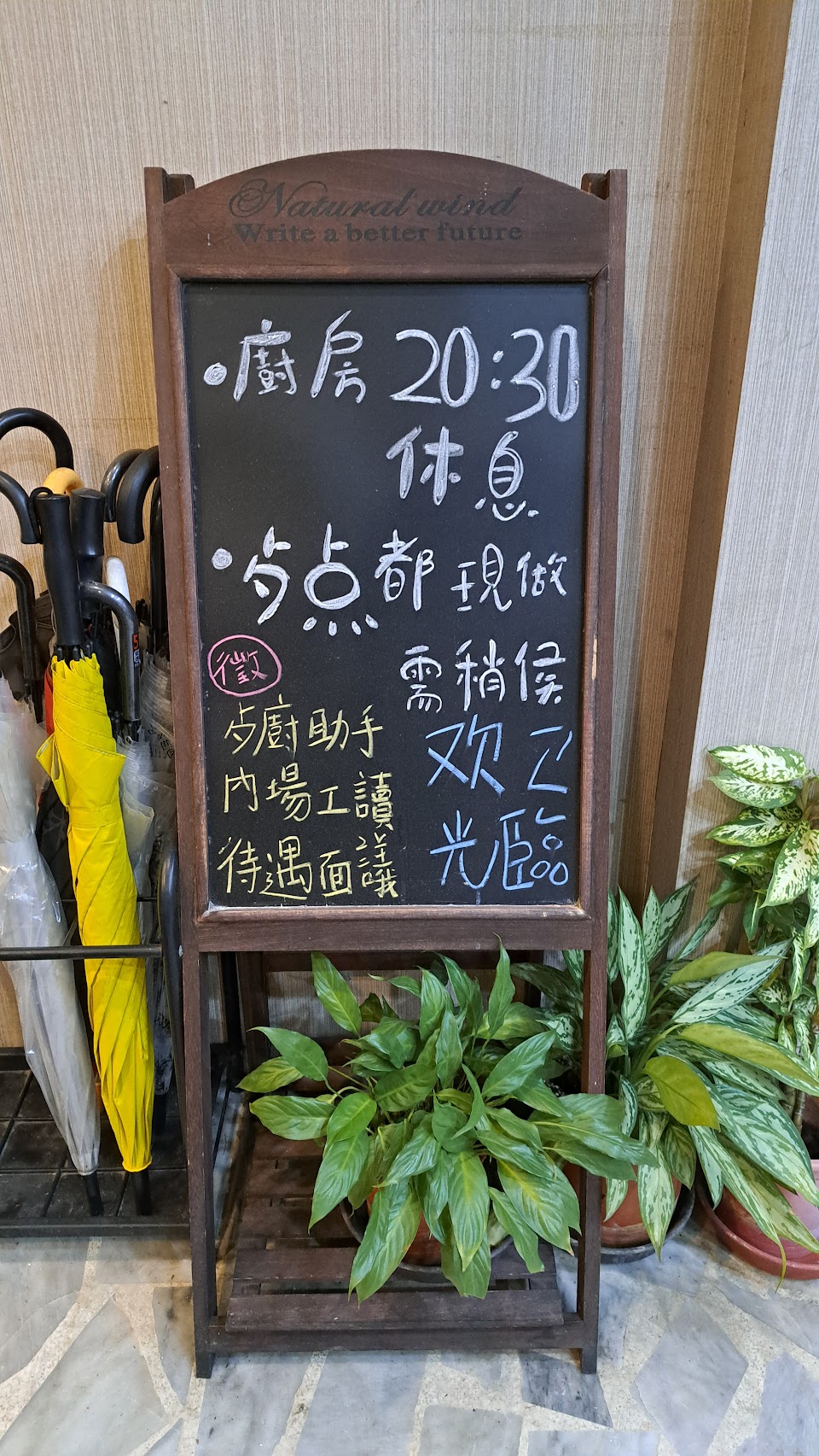 當時約莫8點,先看了外面的營業時間到九點,時間還充足可以吃個晚餐,外場女店員帶位完有先告知說