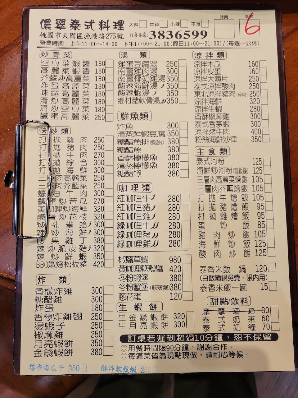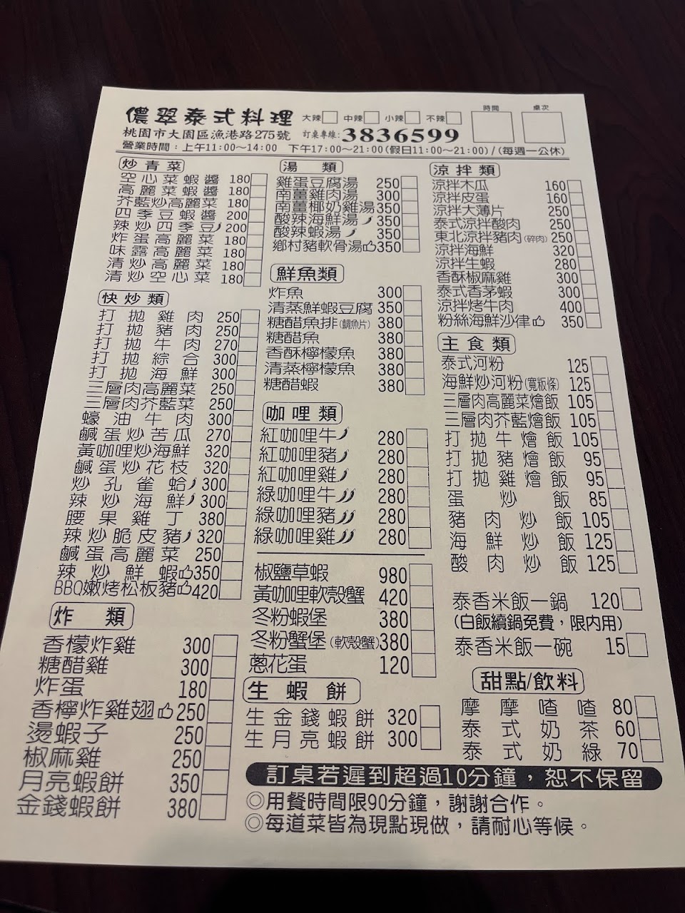 2024最新在地推薦餐廳的菜單_儂翠泰式料理的菜單、圖片