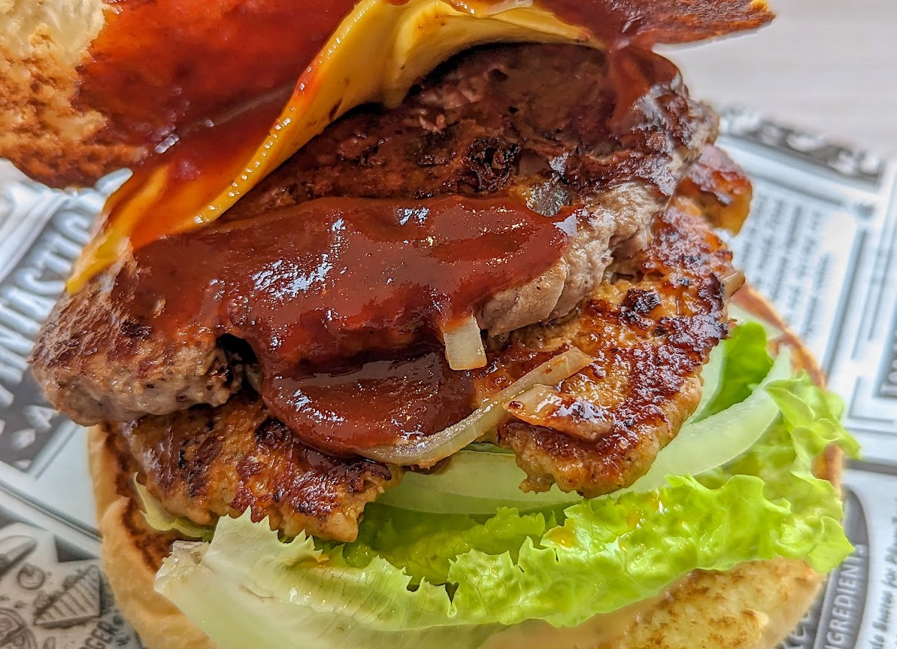 至於漢堡肉及其他配料,表現中規中矩。漢堡肉保有適度的肉汁,香氣跟鹹度都還行,但仍不到咬下後,肉汁會滿溢的程度;生菜很清脆,為漢堡補足了些許水分;起司與花生醬大大增添了香氣與滑順度。
