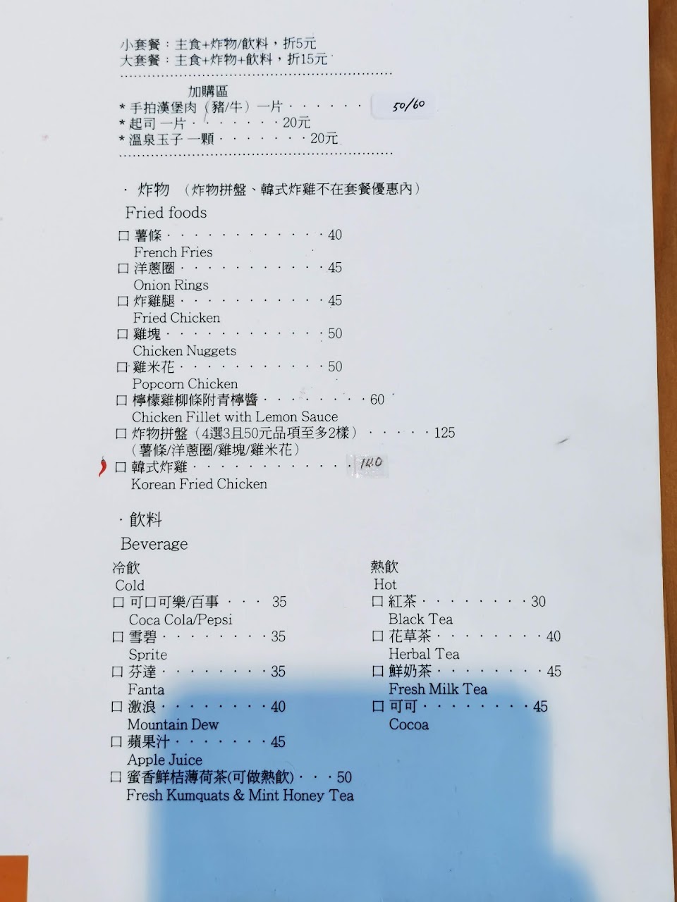 點了韓式炸雞、玉子牛丼飯和香煎起司培根醬漢堡。雖然外帶和外送有很多,但上菜速度快。