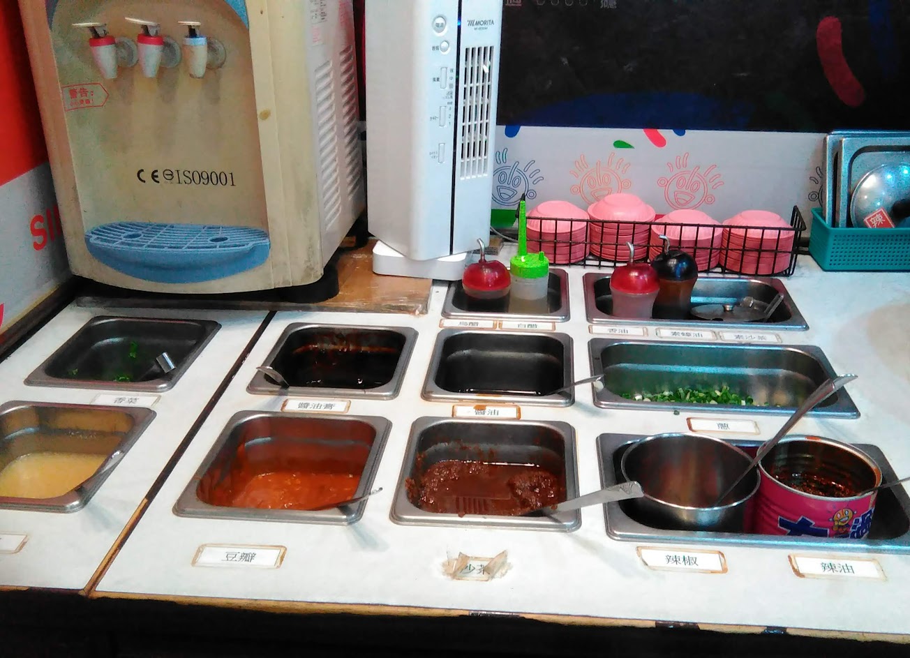有青菜可自行拿取 但位置實在太小 會一直碰到別的客人