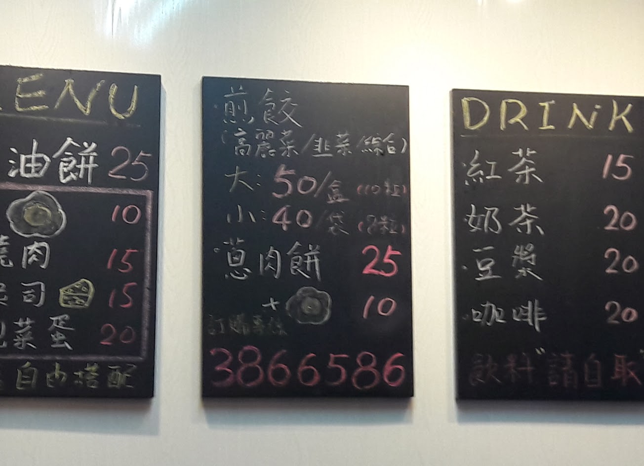 煎餃大顆 飽滿多汁, 高麗菜&韭菜 皆很鮮香~ 肉餅很獨特, 別家吃不到的口味, 蔥餅包裹肉肉&鹹香醬料, 很是滿足, 必吃品項 ! 飲料(豆漿, 紅茶, 奶茶) 也都很有水準, 吃得安心又開心~ (對了, 外送小弟神似 古天樂 呢, 哇哈哈ㄏ!