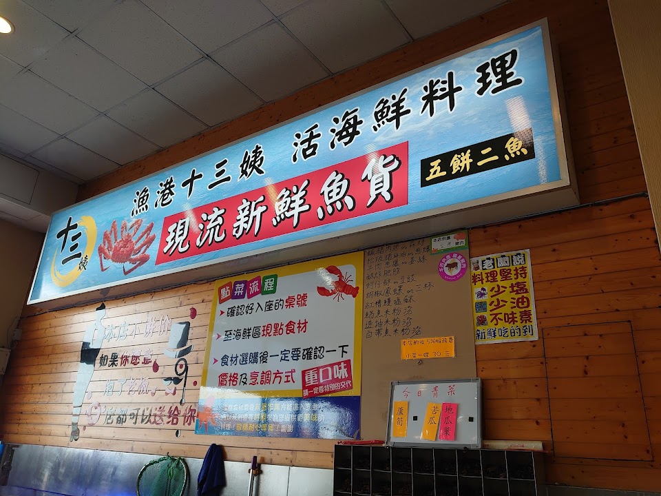 魚港十三姨餐廳,料理多樣也有飲料,交通方便有附停車場。