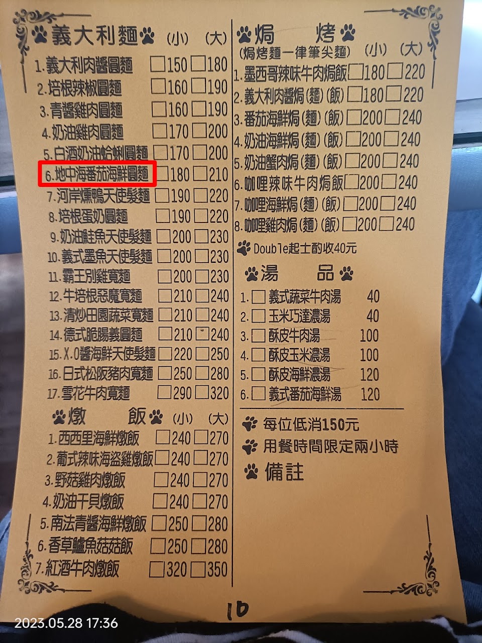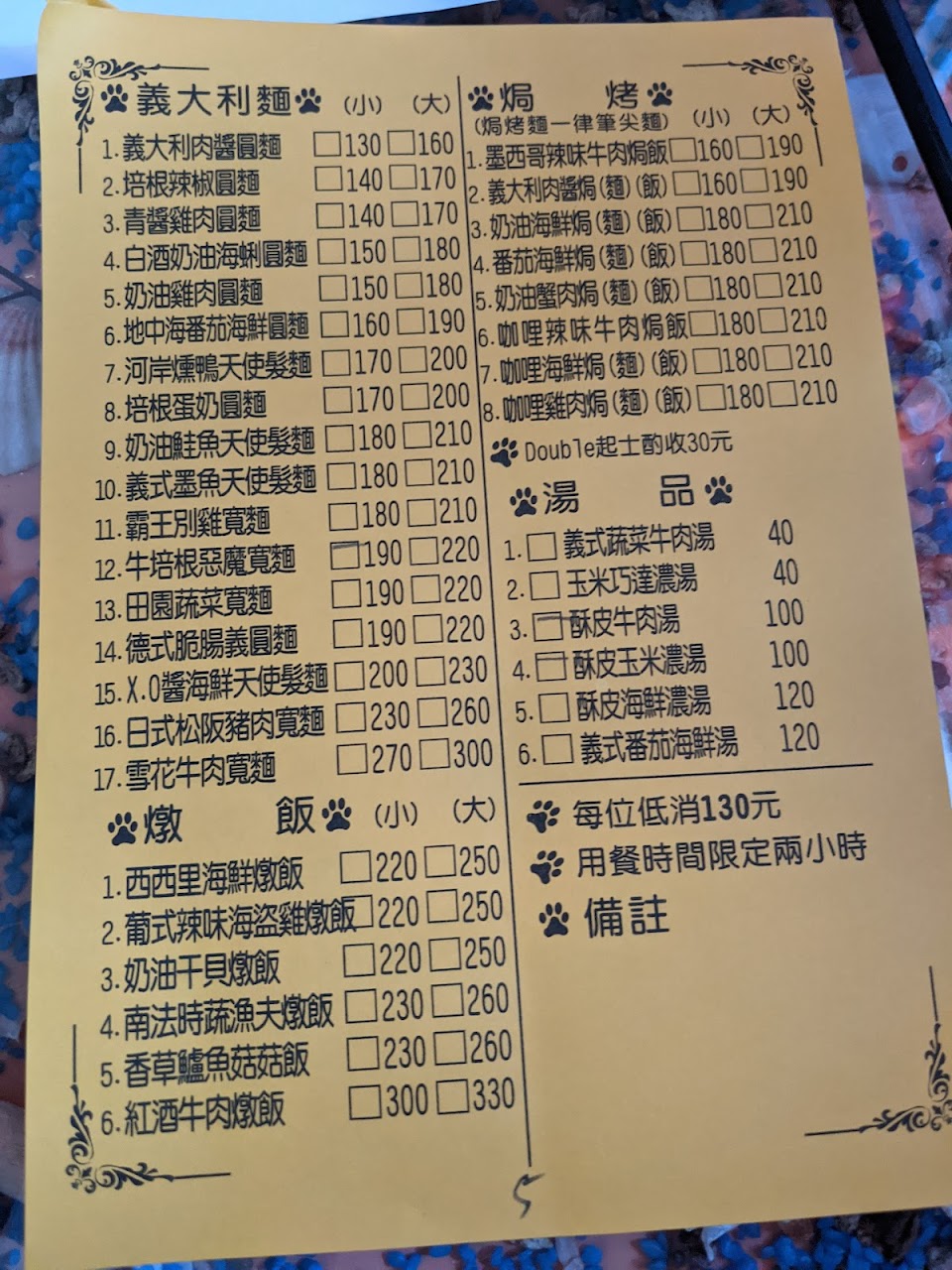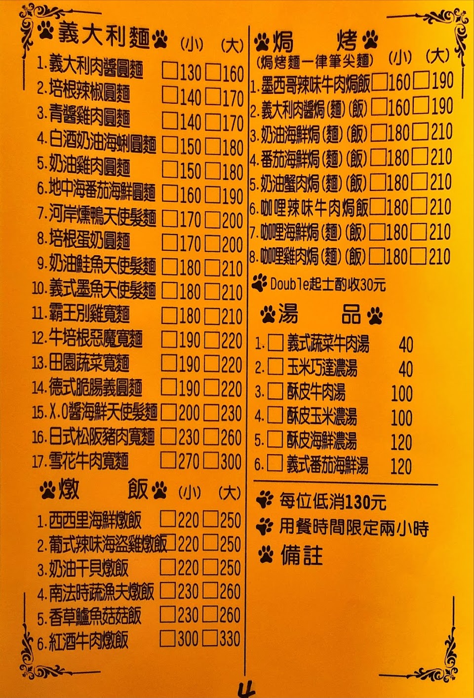 2024最新在地推薦餐廳的菜單_Big foots 大腳義大利麵的菜單、圖片