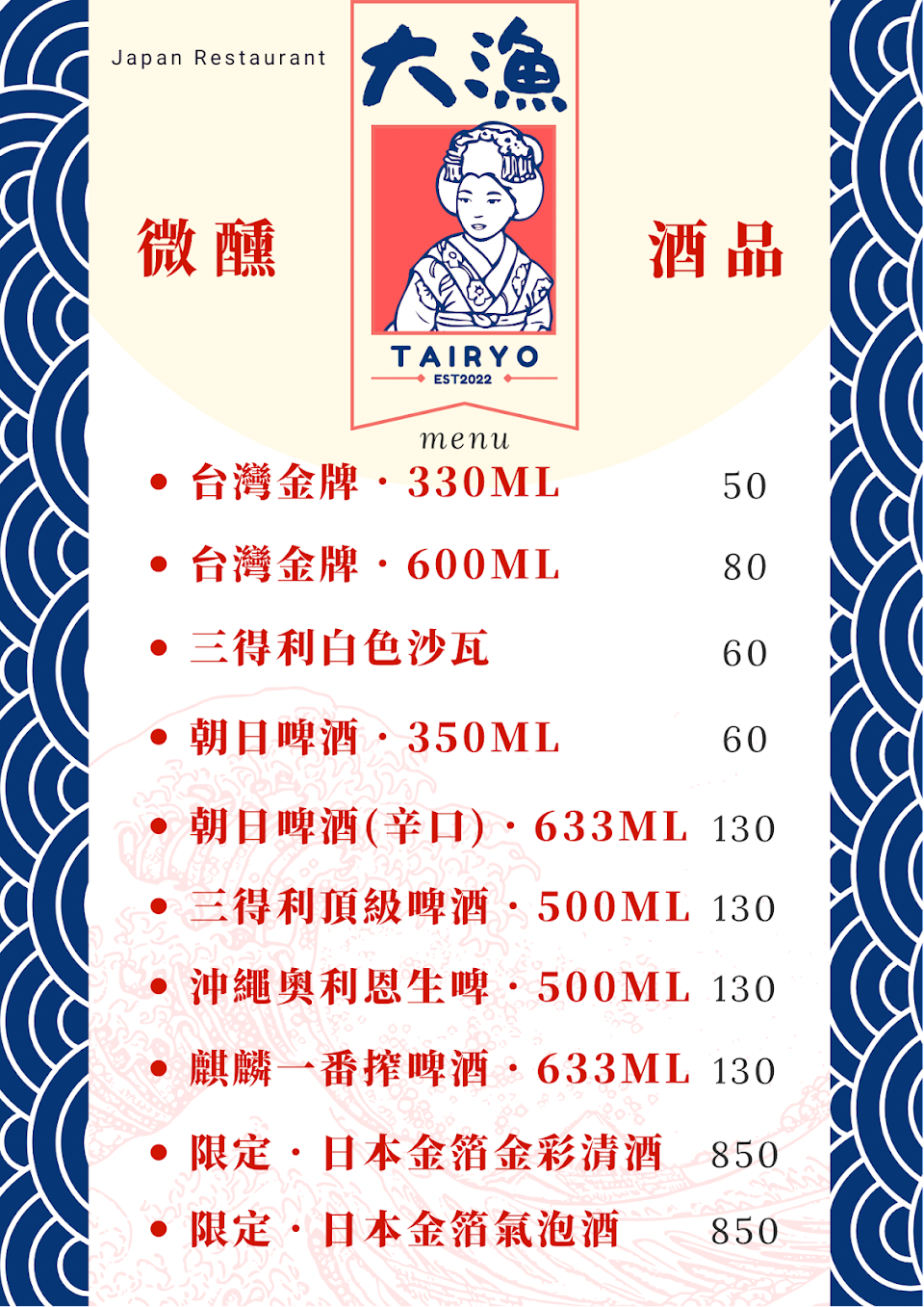 2024最新在地推薦餐廳的菜單_大漁的菜單、圖片