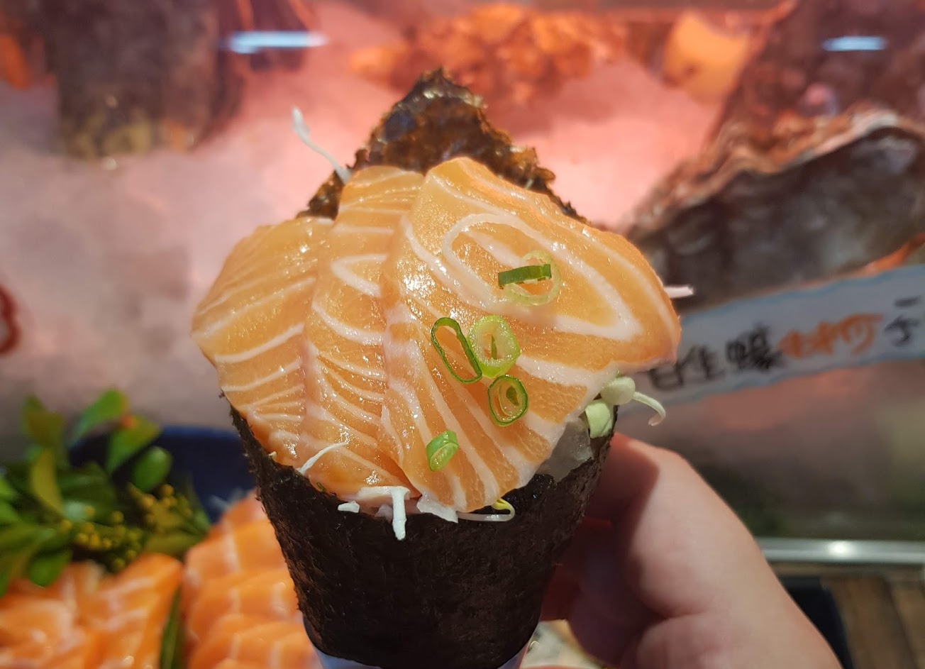 每次來竹圍都會買個生魚片手卷 雖然不便宜但用料還算實在 食材也很新鮮