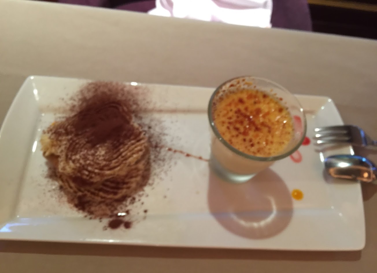 回到餐點上,洋蔥湯有點無聊,但我點的酥皮濃湯更無聊。前菜我已經沒什麼記憶點,牛排的部分,真的有點普通,我覺得別人點的鴨胸比我好吃多了,但他一樣覺得鴨胸不ok。甜點的話,嗯⋯⋯我不喜歡,飲料也不好喝,花這樣的錢卻吃到這樣的東西,看看google評價又好像不錯,我都要懷疑是我味蕾太挑剔還是我不懂美食?