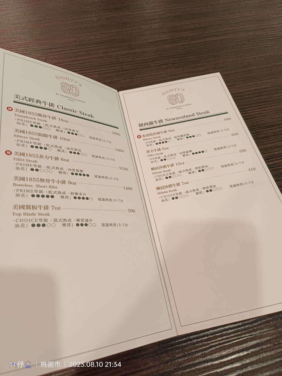 另外牛排?都有說明「油花」及「嫩度」還有建議熟度!真的很貼心!