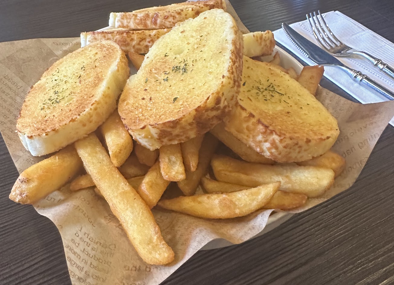 手工香蒜麵包 薯條