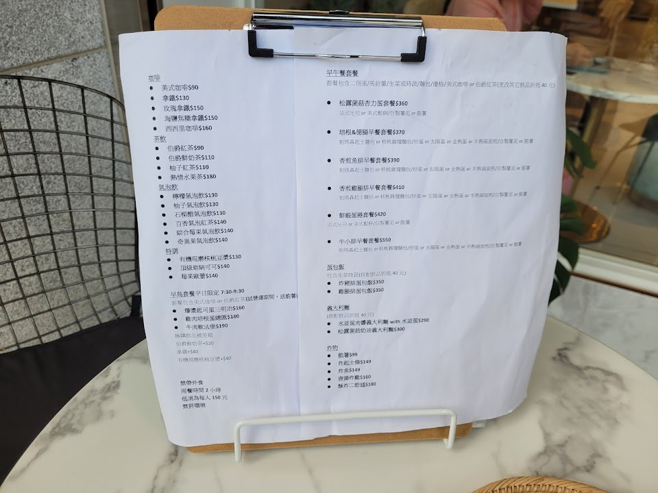 價格偏高,但食物還算不錯,松露菌菇蛋套餐,歐姆蛋軟嫩好吃?(裡面還有起司),法式吐司也還不錯,優格+穀物裡的優格很香、感覺偏義式優格,馬鈴薯泥感覺有點乾,但是吃得到馬鈴薯的一點口感,,水果和生菜是我覺得還需要改善的,生菜可以使用幾種不同的,而非只用蘿曼⋯有點單調,而且偏硬,蓮藕口感清脆很好吃,芭樂建議去籽,而且柳丁需要剝皮,好麻煩?(個人喜好)