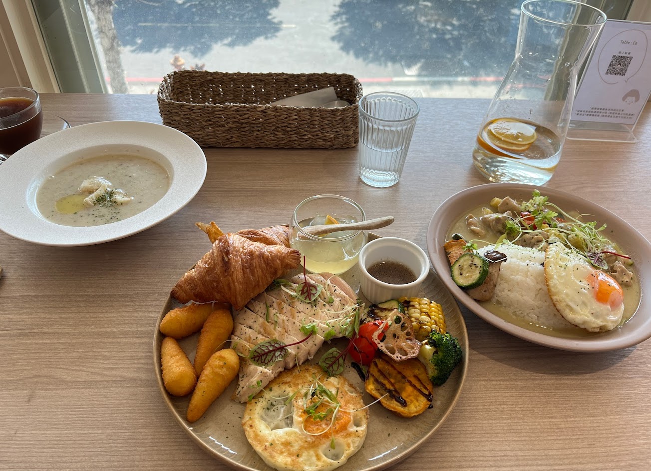 環境很乾淨優美,面對書法公園的吧檯很不錯,早午餐盤整個很豐富又好吃,從炒蛋、烤蔬菜、青醬巧巴達到優格都很可口,炸蝦咖喱飯也好好吃!莓果氣泡飲好拍但稍微有點淡~整體很推薦!