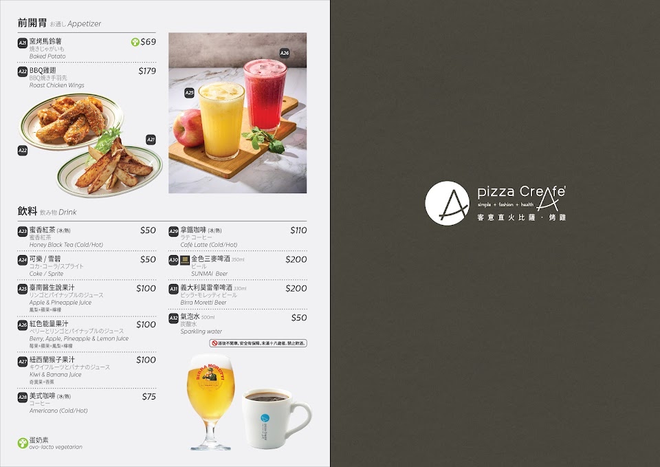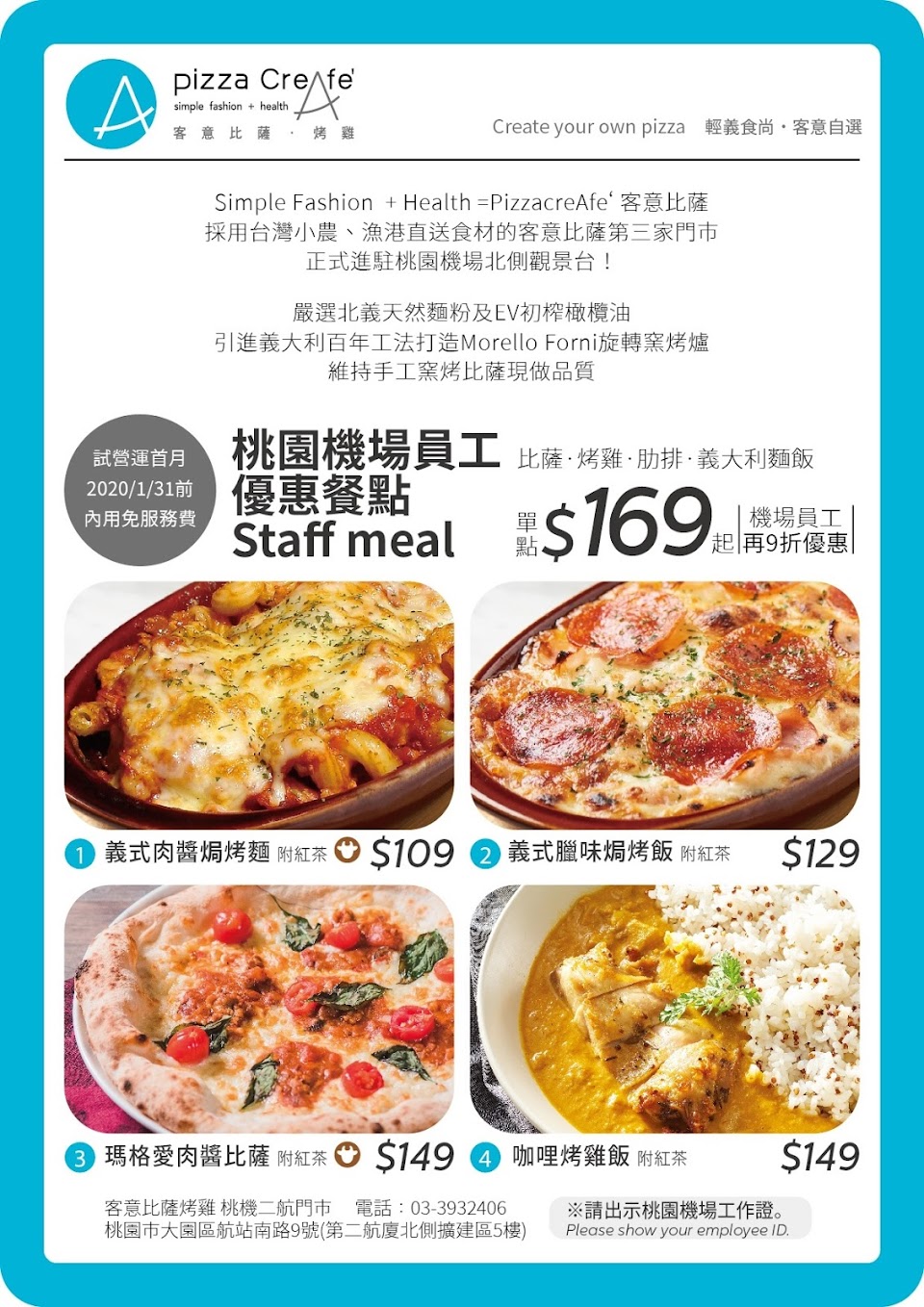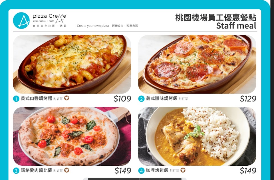 2024最新在地推薦餐廳的菜單_Pizza creAfe’客意比薩烤雞 (機場二航店)的菜單、圖片