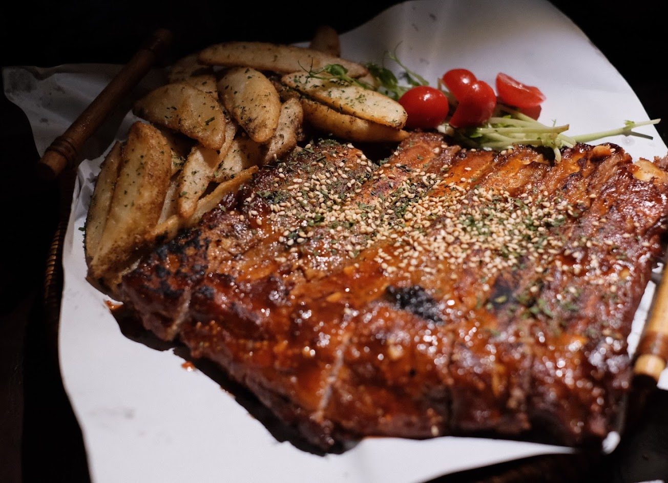 經由網路看到這家餐廳,想著有機會一定要來嚐鮮看看,也是因為很隱密,想來試試看。 預約10點,大概9:50就到了,門鈴只按一次,上面寫說按第二次要+500元,於是我們也都空空的等,第二組客人也排在我們後面,不敢再按門鈴,怕需酌收門鈴費,但第二組等的稍微有點久,他們鼓起勇氣去按了第二次門鈴(因為他們還沒按過?) 後來帶位入座後,因不曉得10點後的排餐無法點餐,我們點了其他的配酒炸物,及手工啤酒。 大致上的餐點服務都蠻讚的,只是吸煙區還是要走到後方去吸菸,整體來說,很適合約會或者網美們來拍照^_^