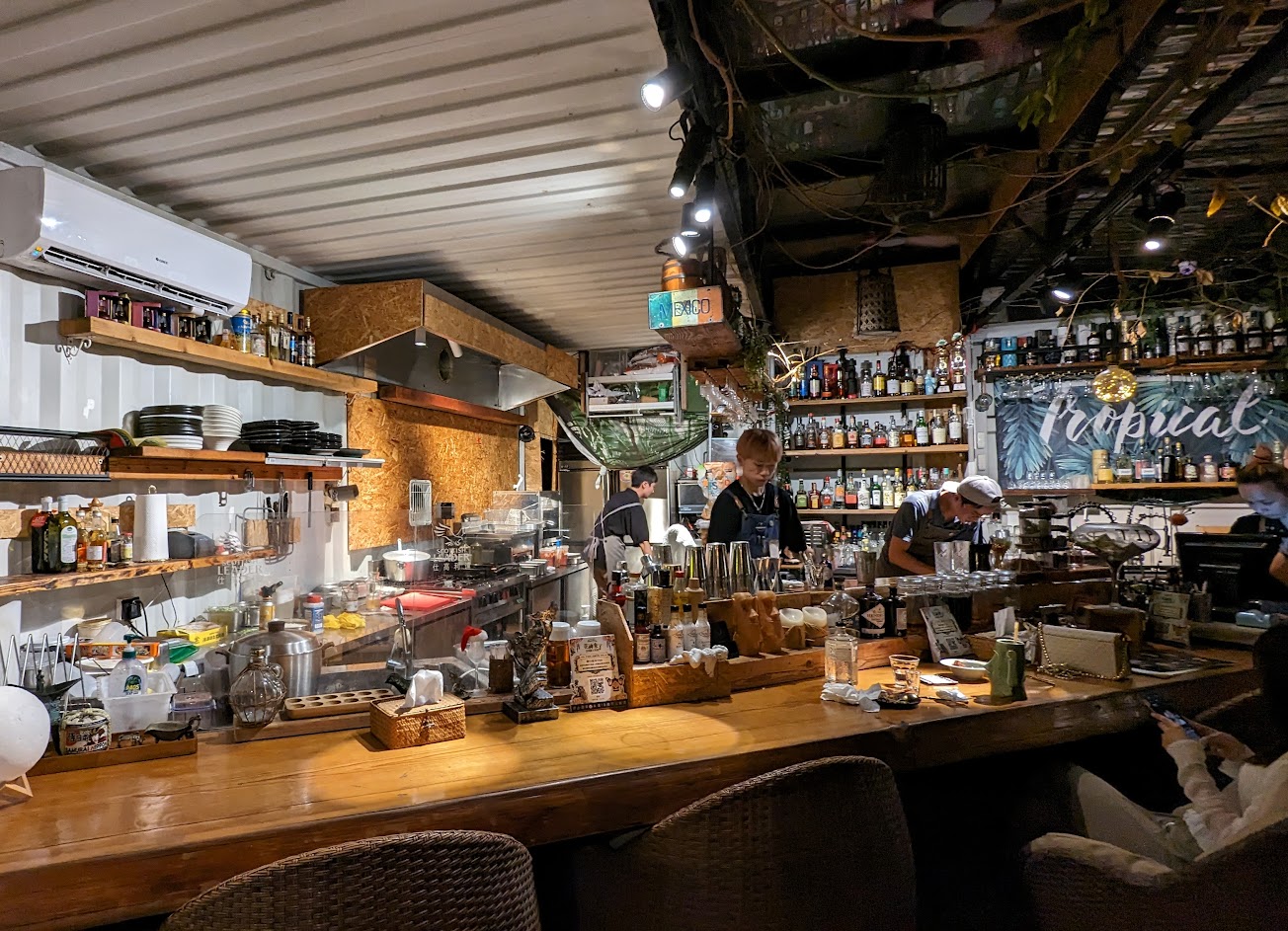 環境幽靜,有熱帶國家的建築風格,服務品質也不差,讓人放鬆喝酒的好地方