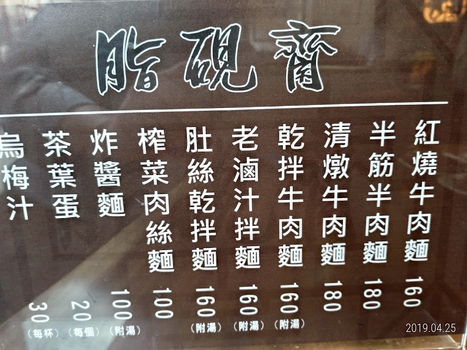 2024最新在地推薦餐廳的菜單_脂硯齋牛肉麵的菜單、圖片