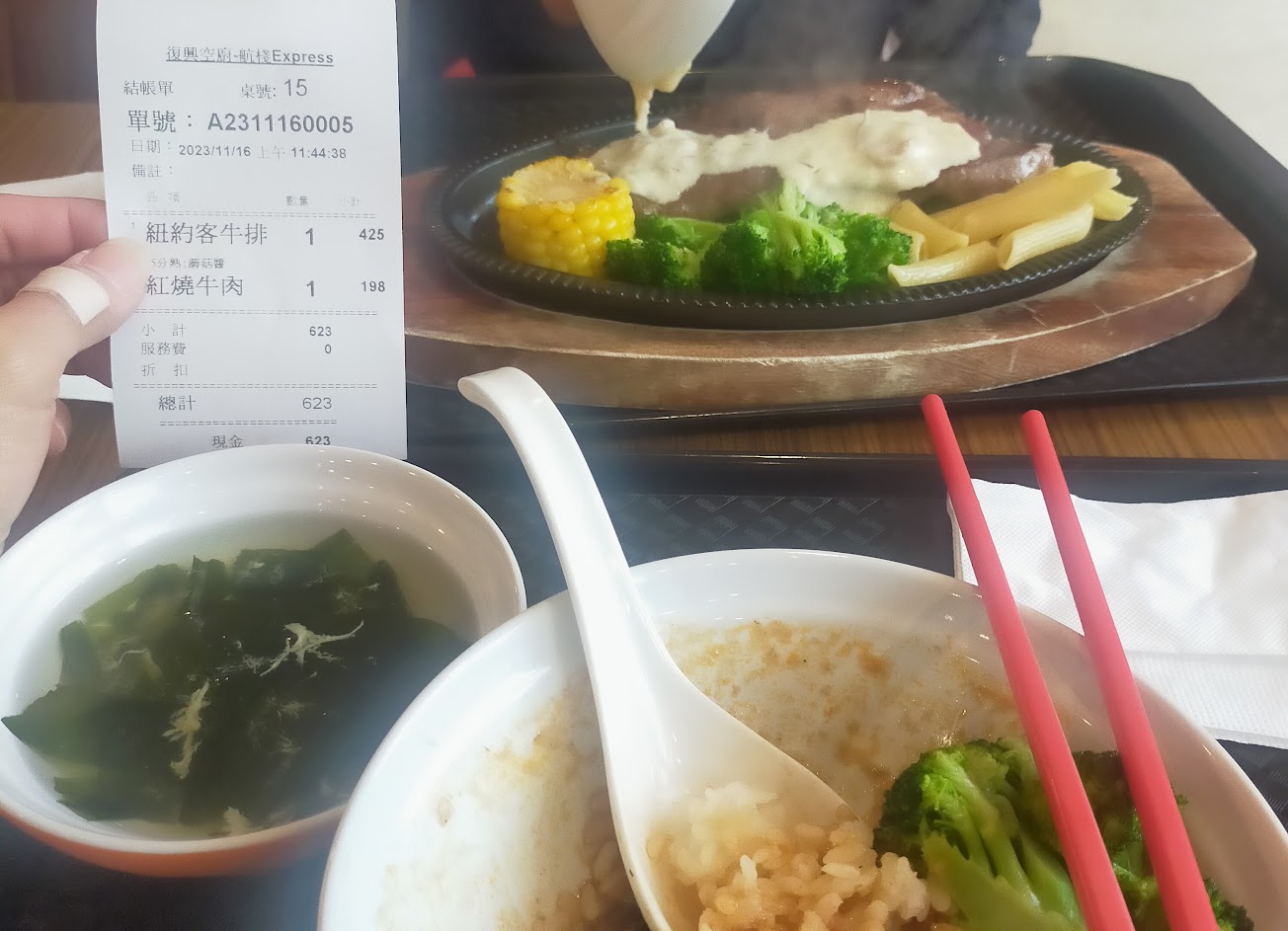 餐點牛排很好吃(也最貴),其他就符合一般水準。