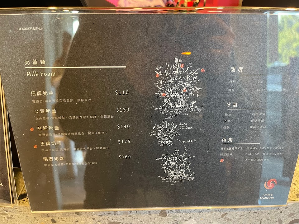 ?上門紅牌拿鐵$145:(微糖)紅烏龍的味道比起文山包種茶更濃厚一點,茶的感覺比較沉靜一點,茶葉的味道會比較突出,這個是菜單上的招牌,個人感覺也很有特色,推薦喜歡茶味比較醇厚的人點這個