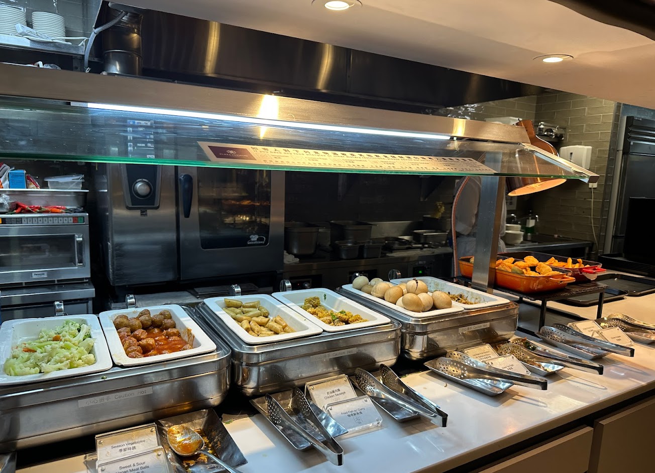 週二晚上並不擁擠。地方乾淨又寬敞。除了小自助餐區外,您還可以從櫃檯點菜。食物份量很小,只能吃快餐。不管怎樣,這仍然是一個放鬆和等待登機的好地方。