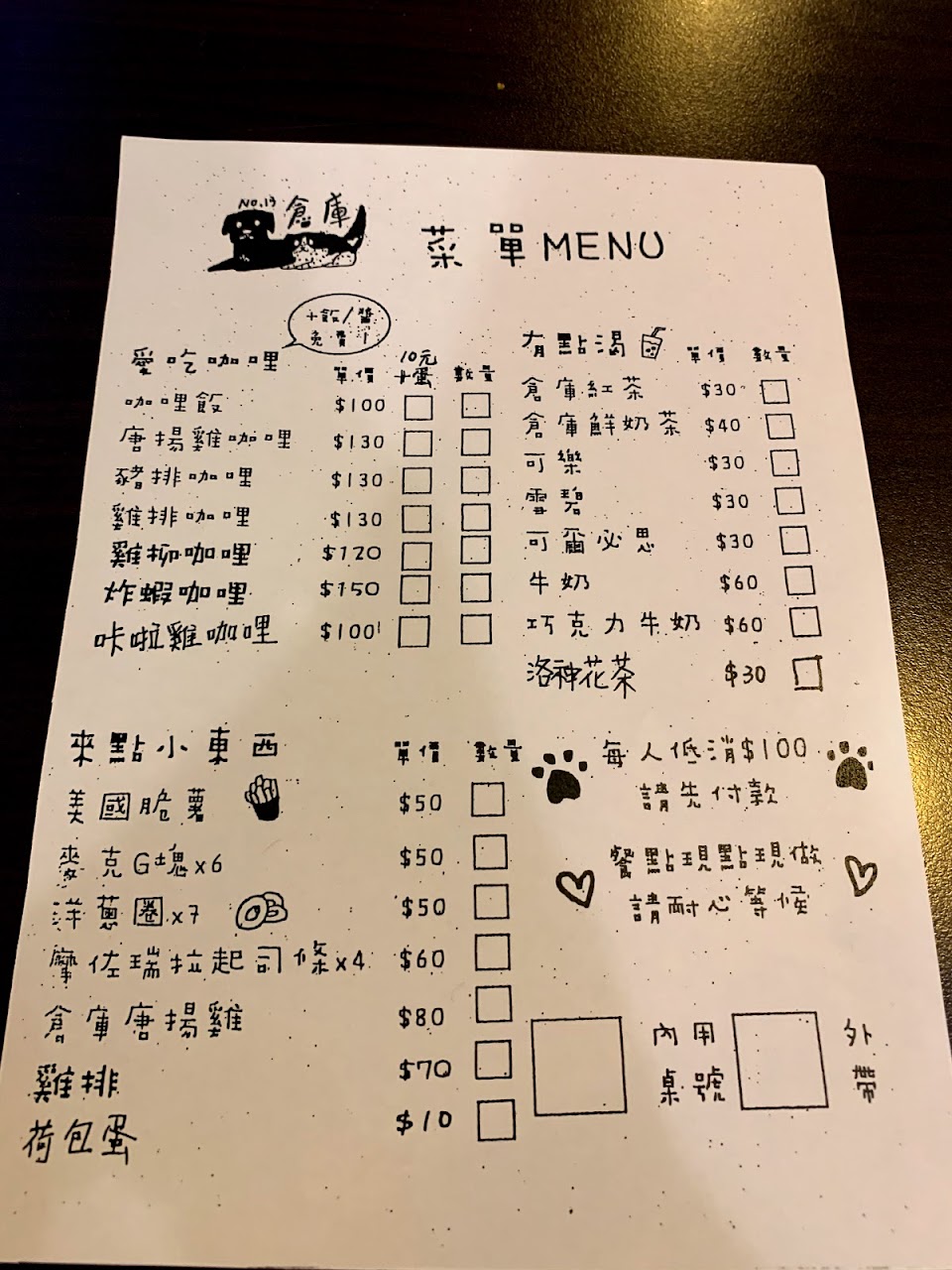 P.S No.13倉庫咖哩他沒有提供任何的手機支付 line pay/刷卡,需付現金。