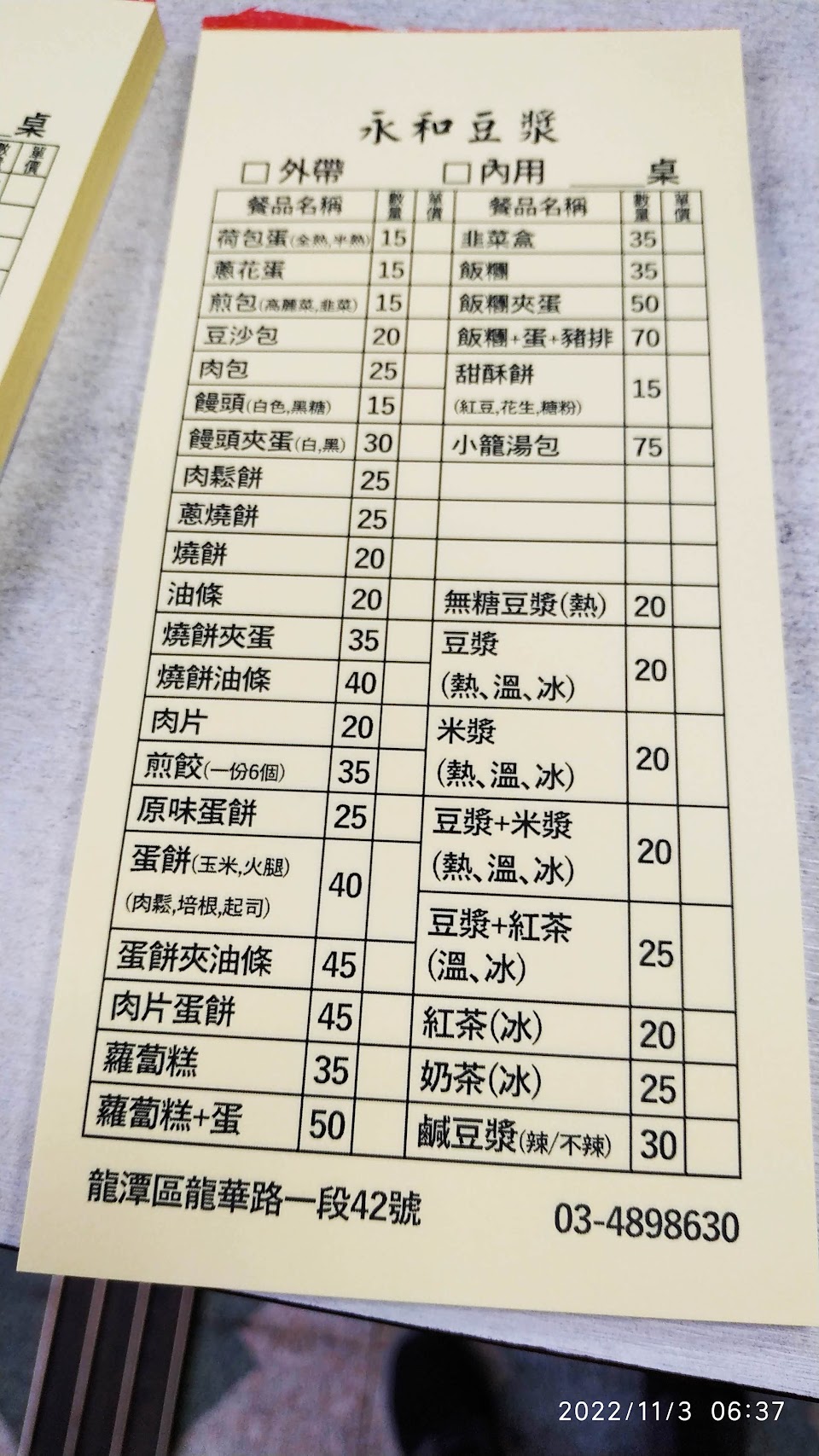 2024最新在地推薦餐廳的菜單_永和豆漿的菜單、圖片