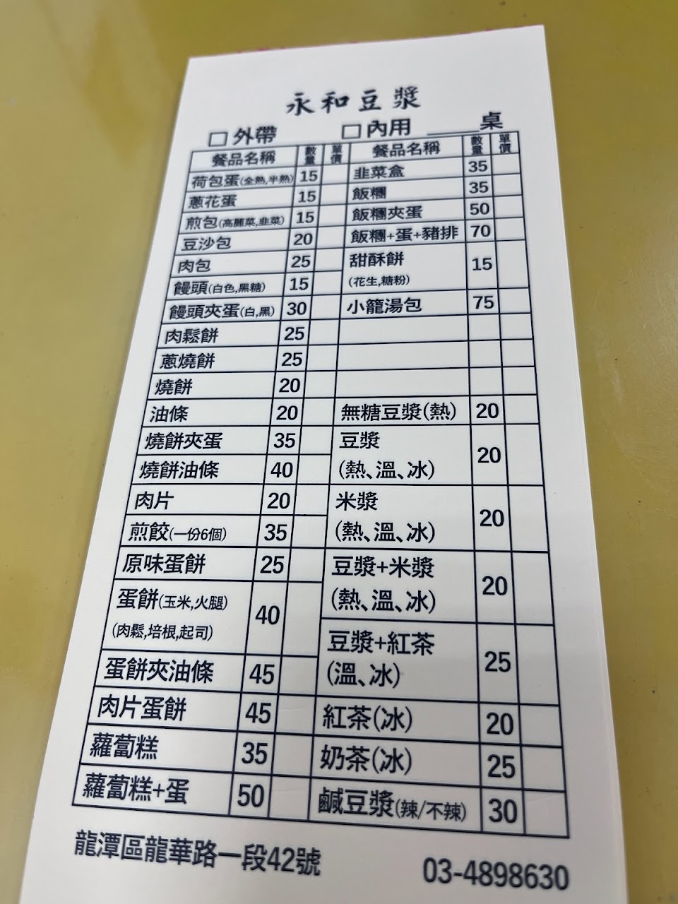 龍潭唯一能吃的永和豆漿 蛋餅系列都不錯 其他還可以 餐點:5 服務:3 氣氛:3