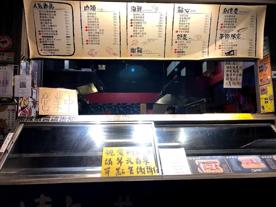 燒烤老店,附近停車方便。內用白飯免費真的佛心,服務也很好,特別是一位瘦瘦、皮膚白皙,剪孫燕姿頭的女店員,介紹都很用心,越南籍的店員也很親切(還親手抓蟑螂,好勇敢!)東西好吃不貴,干貝大粒,烤過也不縮水,讚!