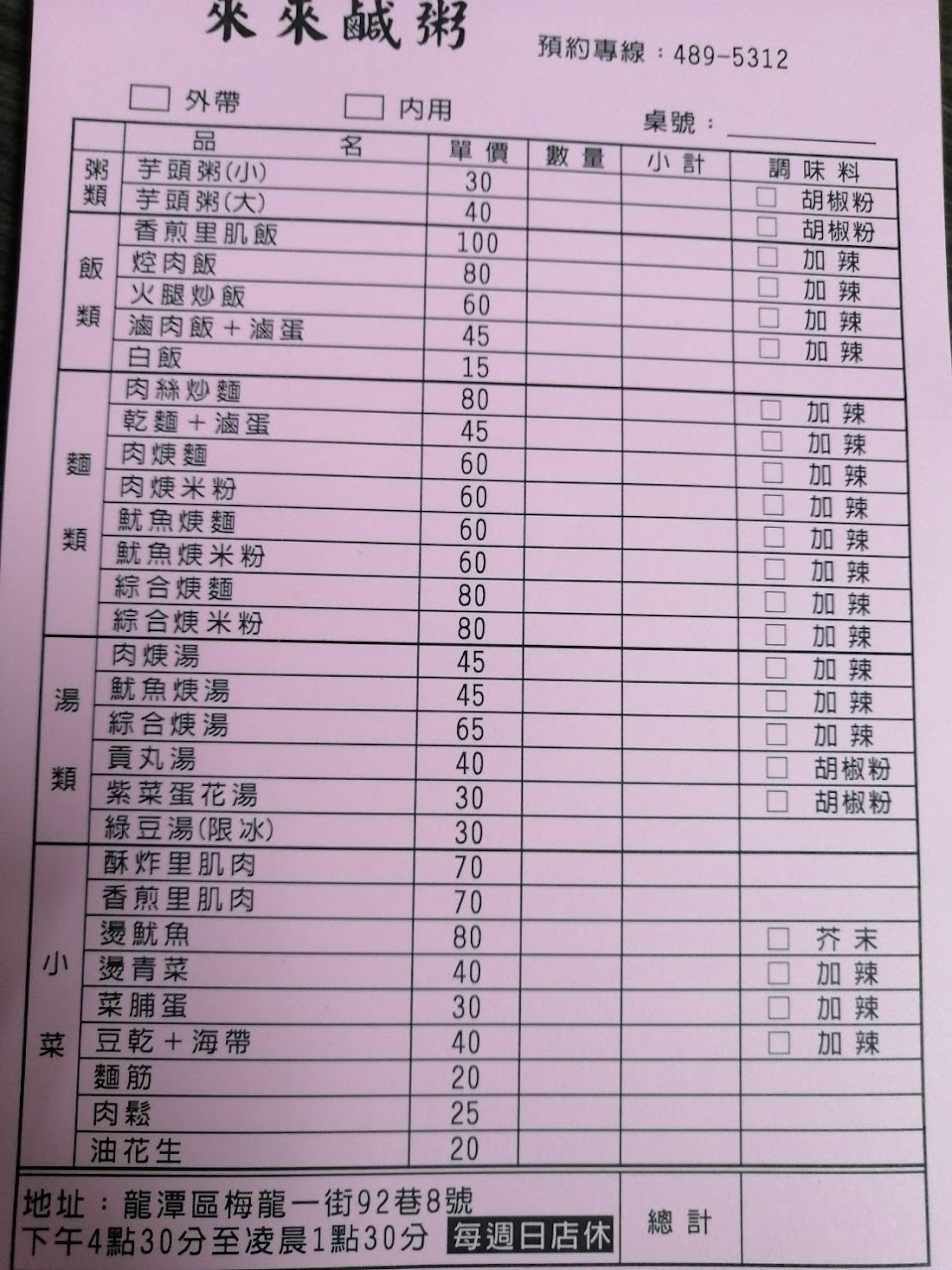 2024最新在地推薦餐廳的菜單_來來鹹粥的菜單、圖片