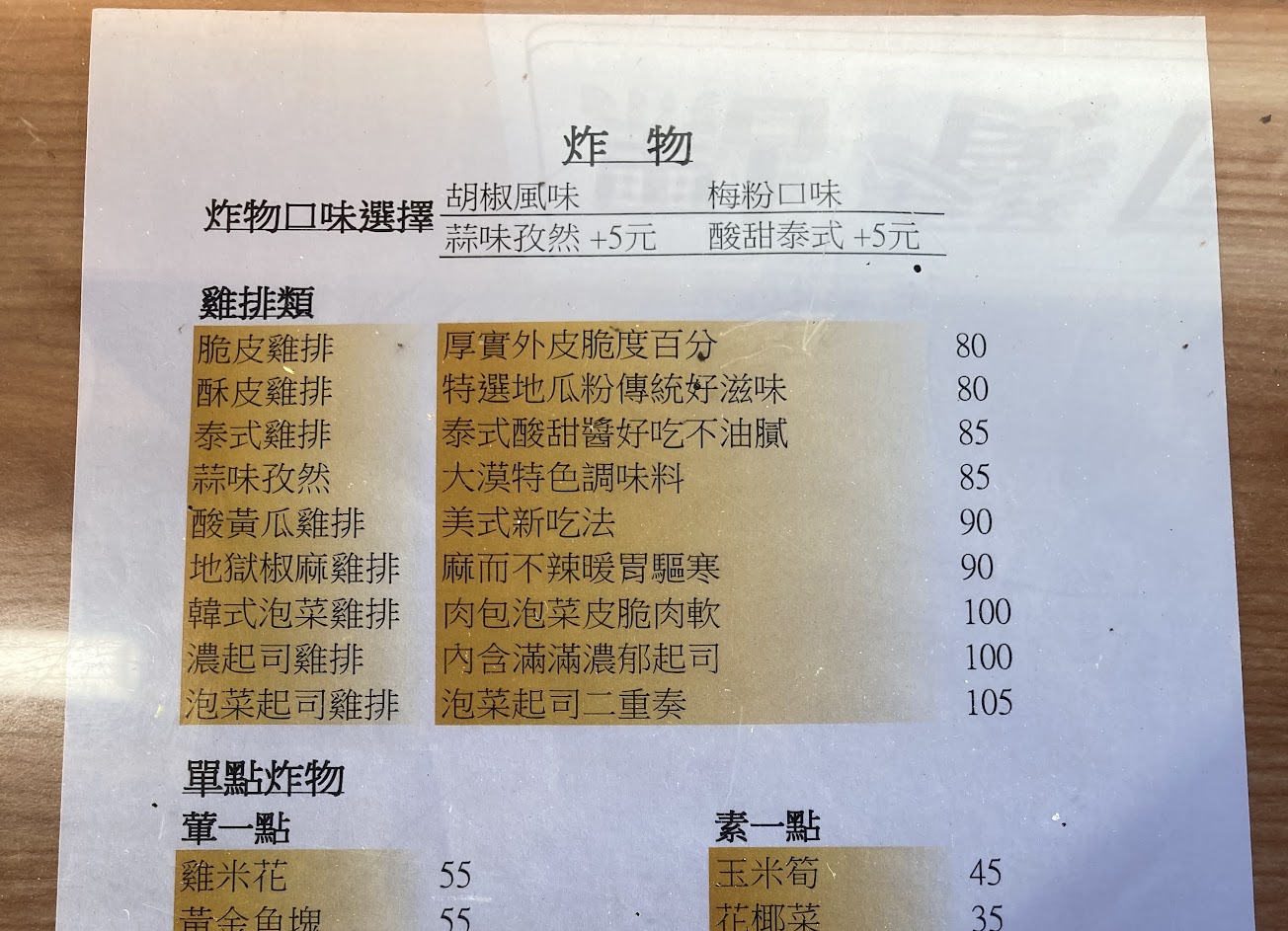 不過以雞排的表現,我覺得這些東西都用炸的一定超讚,不然就是點炒炸物要多點一些東西問老闆能不能裝盒。