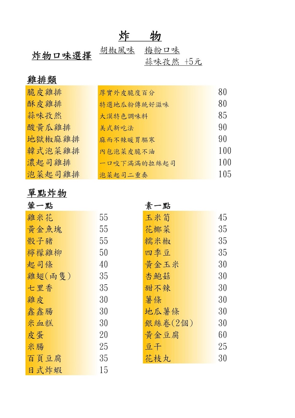不過以雞排的表現,我覺得這些東西都用炸的一定超讚,不然就是點炒炸物要多點一些東西問老闆能不能裝盒。