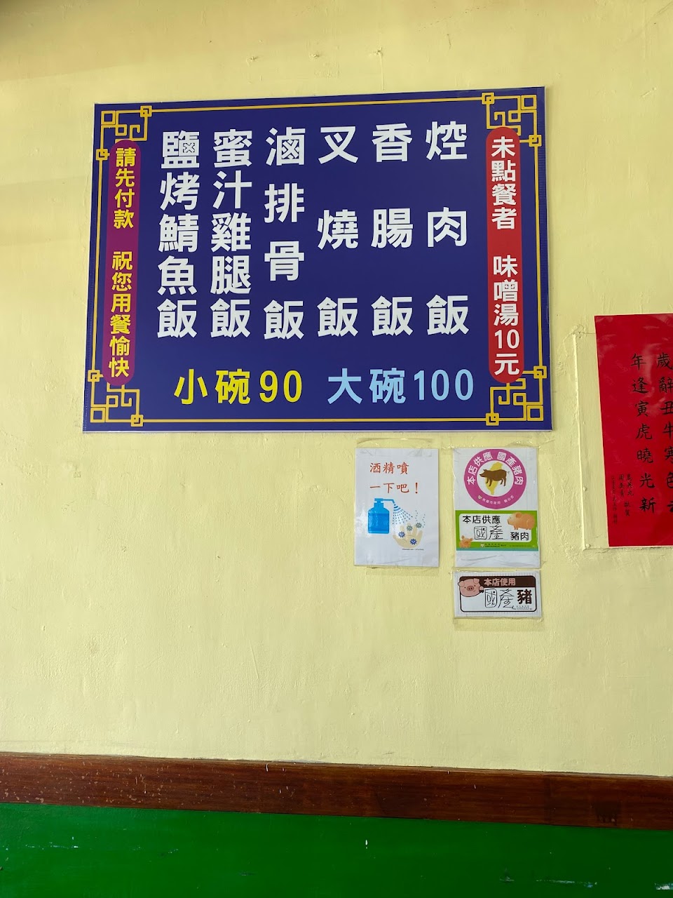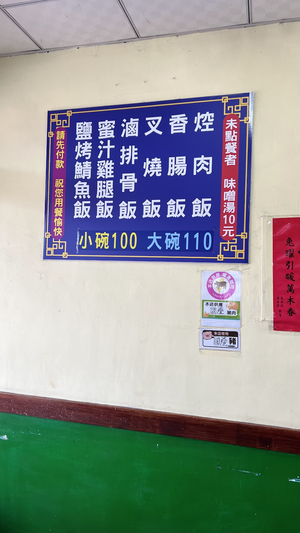 2、焢肉飯排骨飯叉燒飯香腸飯蜜汁雞腿飯鹽烤鯖魚飯六種,小碗100元大碗110元;我下午1340到店內超過廿人用餐,想來用餐時間應該大排長龍。