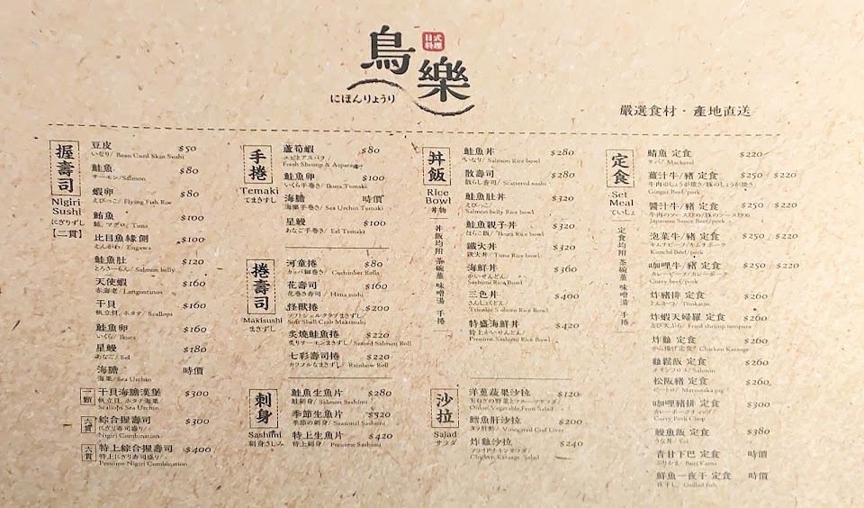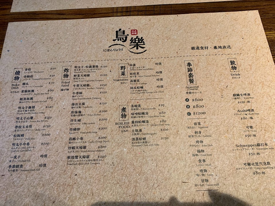 2024最新在地推薦餐廳的菜單_鳥樂日本料理的菜單、圖片