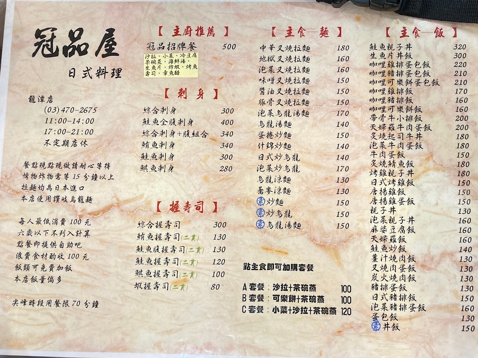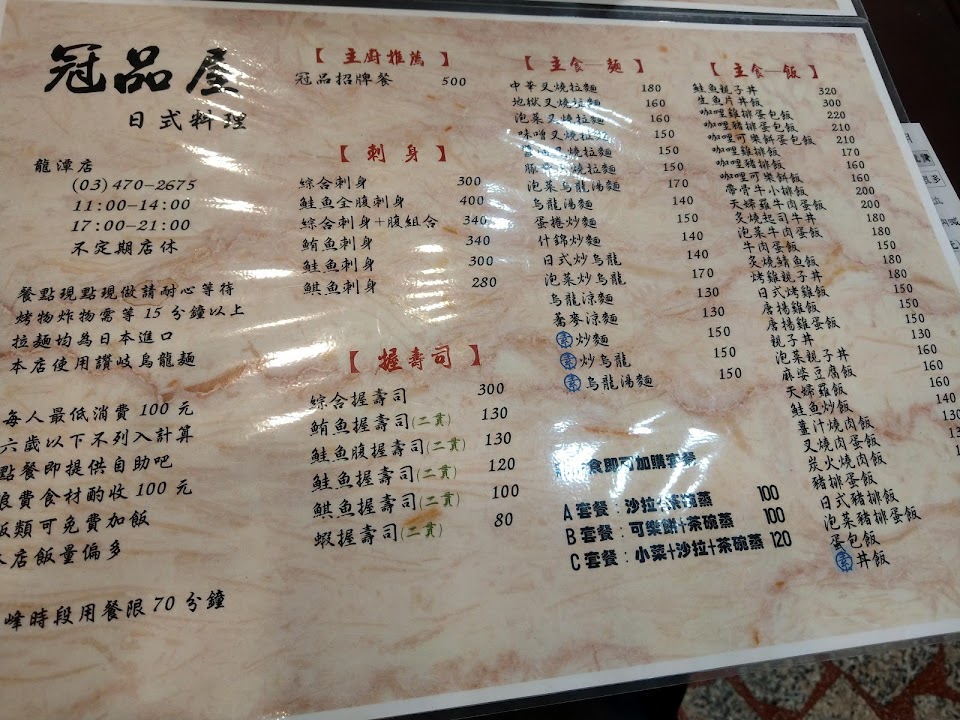 2024最新在地推薦餐廳的菜單_冠品屋日式料理的菜單、圖片