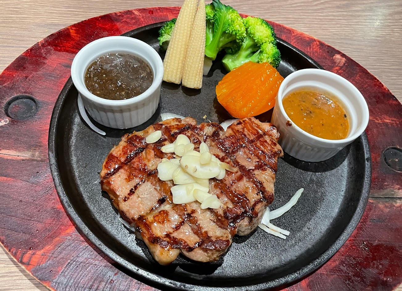 我們點了雪花牛7盎司320元跟黃金豬排290元 如圖片這樣 質感很好 肉排乾煎好吃?配菜地瓜甜度夠 花椰菜?讚 有搭配洋蔥跟蒜片 口感非常好…店內有提供湯 飲料吧 水果3種 用餐品質很好 有➕ㄧ成服務費 我覺得合理 …. 服務 內用 餐點類型 晚餐 平均每人消費金額 $200-400