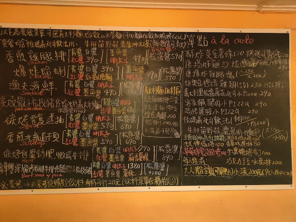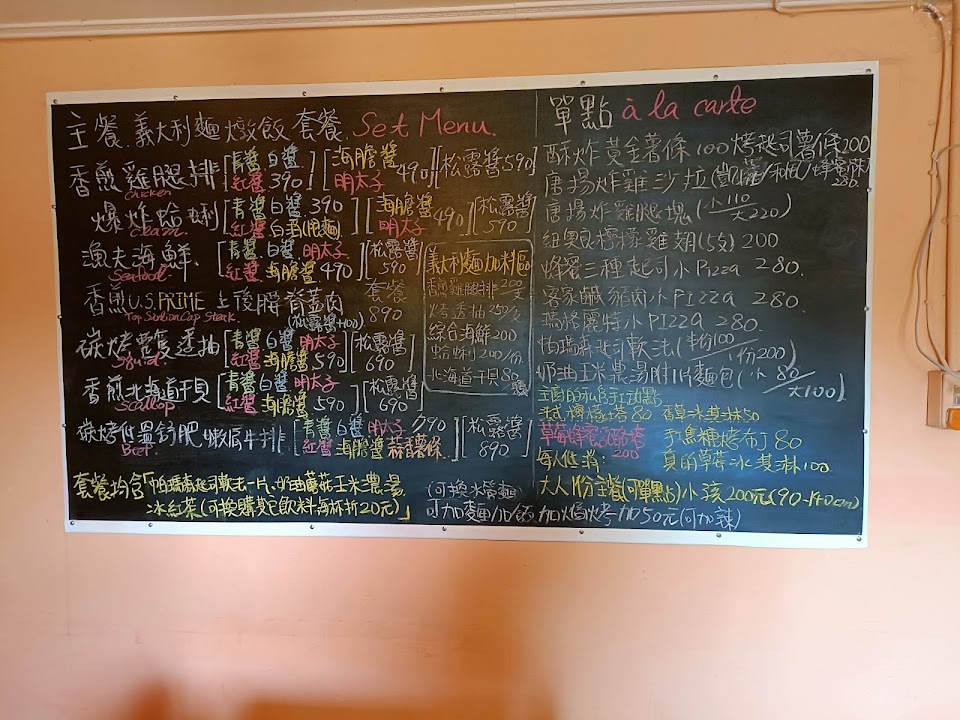 牛排應該是因為部位的關係,就一般般,義大利麵整體不錯。用餐環境及餐具給予的方式,如果稍作改善會有更好的用餐感受。