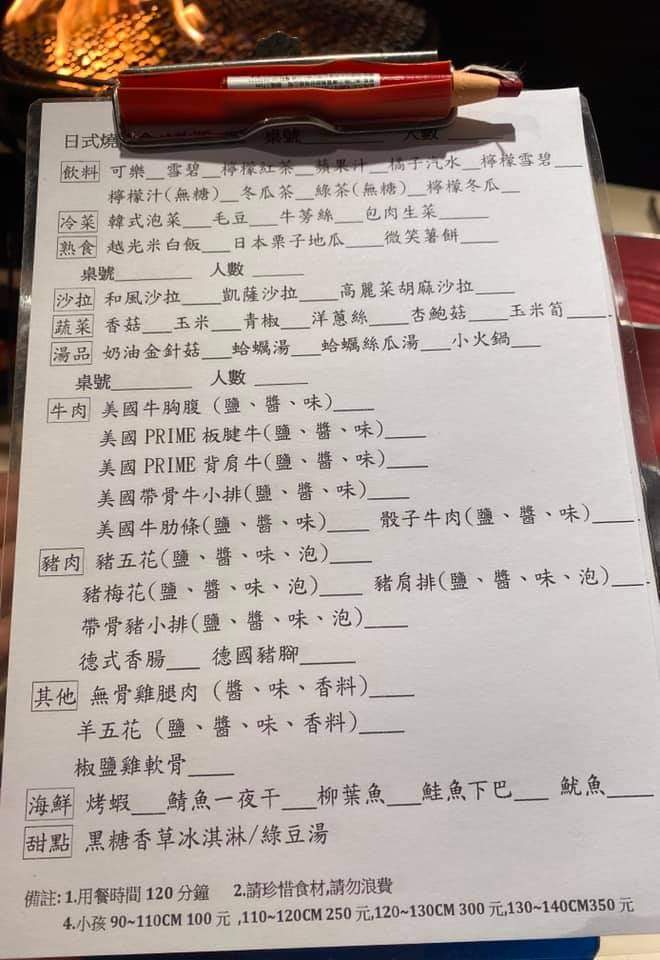 593吃到飽,免服務費。生意很好、很吵,整間店鬧烘烘的,有的小孩不停尖叫、有的狂找把拔的,天哪!肉給得很大氣,烤肉鐵網更換頻繁,服務態度佳。沒有停車場,自己想辦法路邊繞一下。