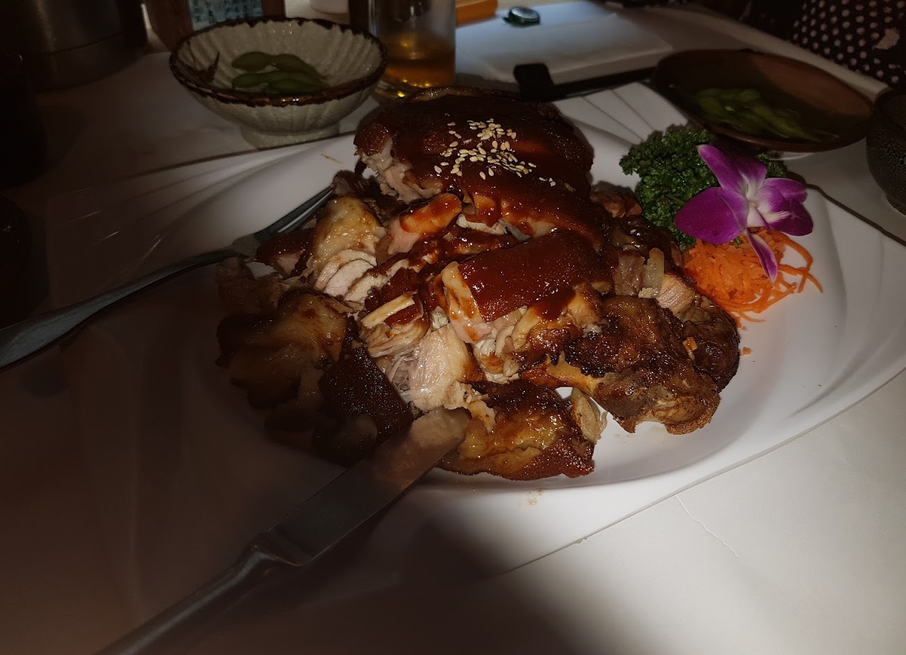 父親節請爸爸吃,他很喜歡喔!吃完飯還能在館內走走,餐點都還不錯,點了大家推薦的醬燒上肘,皮烤的酥脆配醬汁好吃,但吃多會有點膩,適合約五人份(份量固定),還有少見的檳榔花,拔絲地瓜也好吃! 但鴕鳥肉不是很推,不是很新鮮~菜的份量人多建議改大份,四人吃點小份不夠吃,咖喱軟殼蟹覺得還好,沒有很推