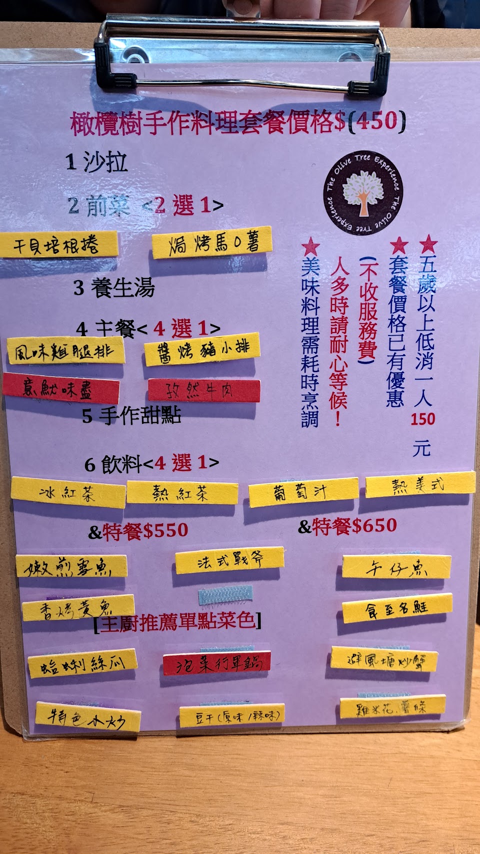 餐廳在一條小路轉進去(很容易就開過去沒注意到),餐廳對面有停車塲,兩大兩小用餐(有提供兒童餐具及兒童椅),點餐的服務生感覺有點生疏,沒有特別介紹什麼,但餐點品質還不錯,份量上適中(套餐外可以加點個小菜搭配),這次用餐印象比較深刻的是雞腿排切開皮下面有夾地瓜,味道還蠻特別的,另外加點的蛤蜊絲瓜湯頭很不錯,加了點九層塔很對味,美中不足的是另一道主菜烤黃魚,魚不大加上對切的關係,會有些碎魚刺不好挑,給小孩吃要特別注意,整體來說很不錯,適合小家庭來用餐! 服務 內用 餐點類型 晚餐 平均每人消費金額 $400-600