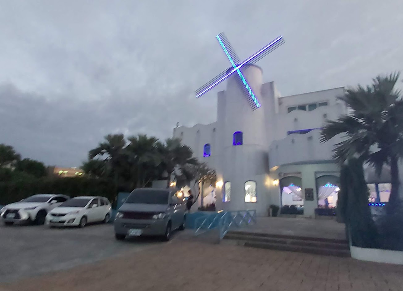 藍白地中海希臘建築竟然是吃中式料理?屋頂那藍色的風車一秒宛如出國打卡景點❤️今天共點了7道菜,個人覺得口味ok,是家庭朋友聚會的好地方