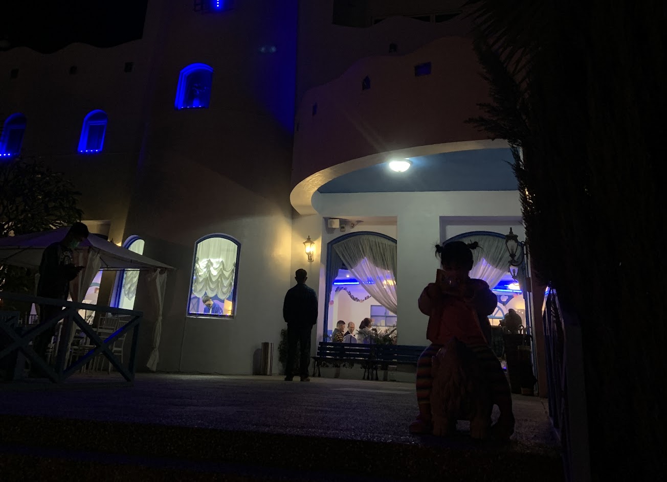 地中海風的建築 卻是賣烤雞 反差有點大 但是還不錯吃 人很多