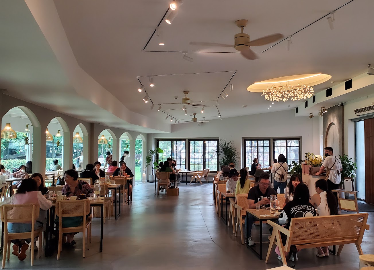 我好喜歡它大面落地窗設計,採光明亮寬敞,整間店充滿我愛的圓弧設計,店內還有美麗的的佈景空間,讓你可以拍照,彷彿是室內攝影棚,每個角落都很美,連牆上的燈都是小天使?的造型,而且每個小天使動作不一樣,我超喜歡這些燈❤️ 餐點部分幾乎都是$400起跳,就是景觀餐廳的價格,沒有美味到令人驚艷,口感還行~