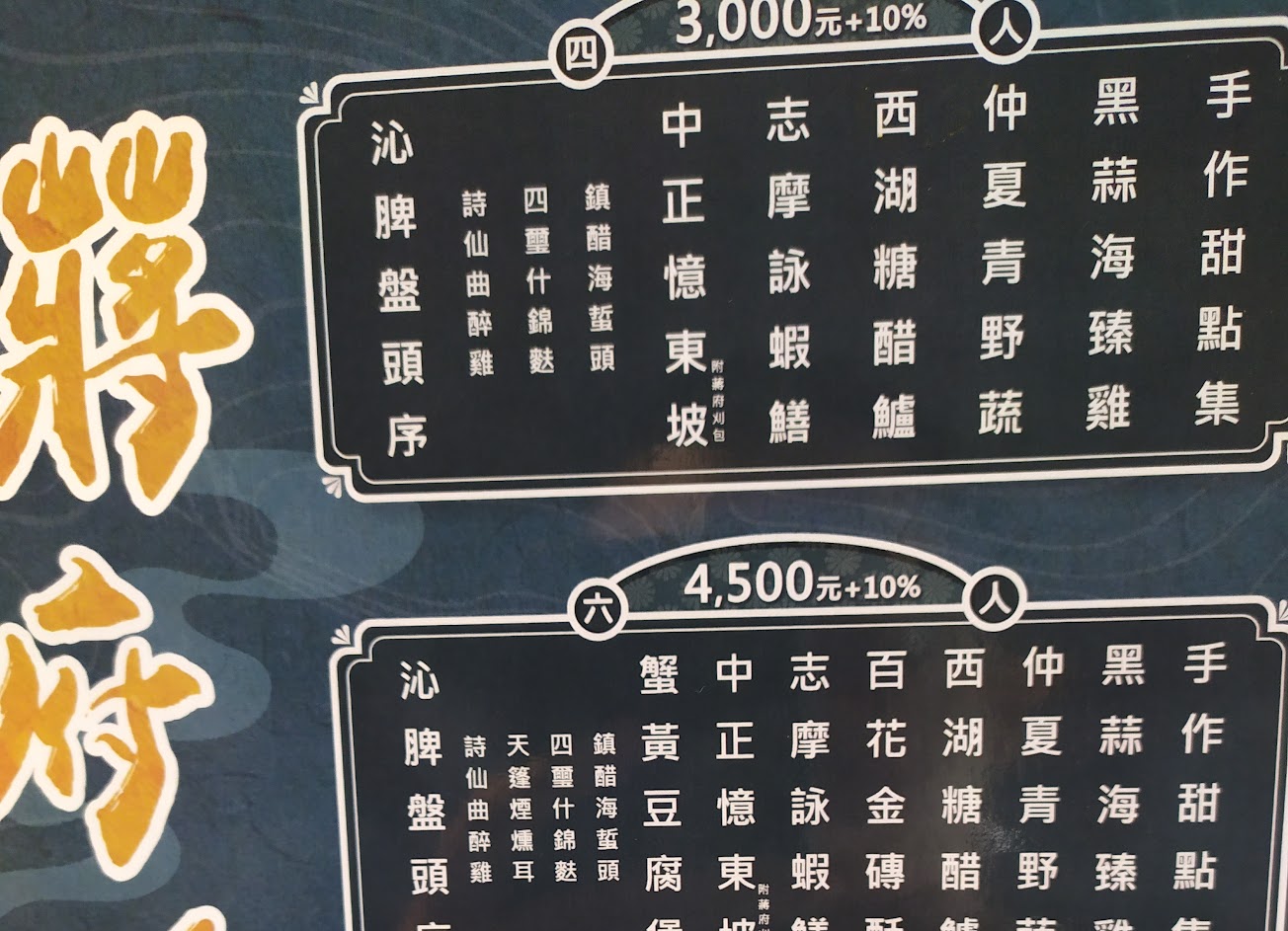 菜色取的名字古色古香。雖然是浙滬菜,相當有特色,但是好不好吃就見仁見智了。