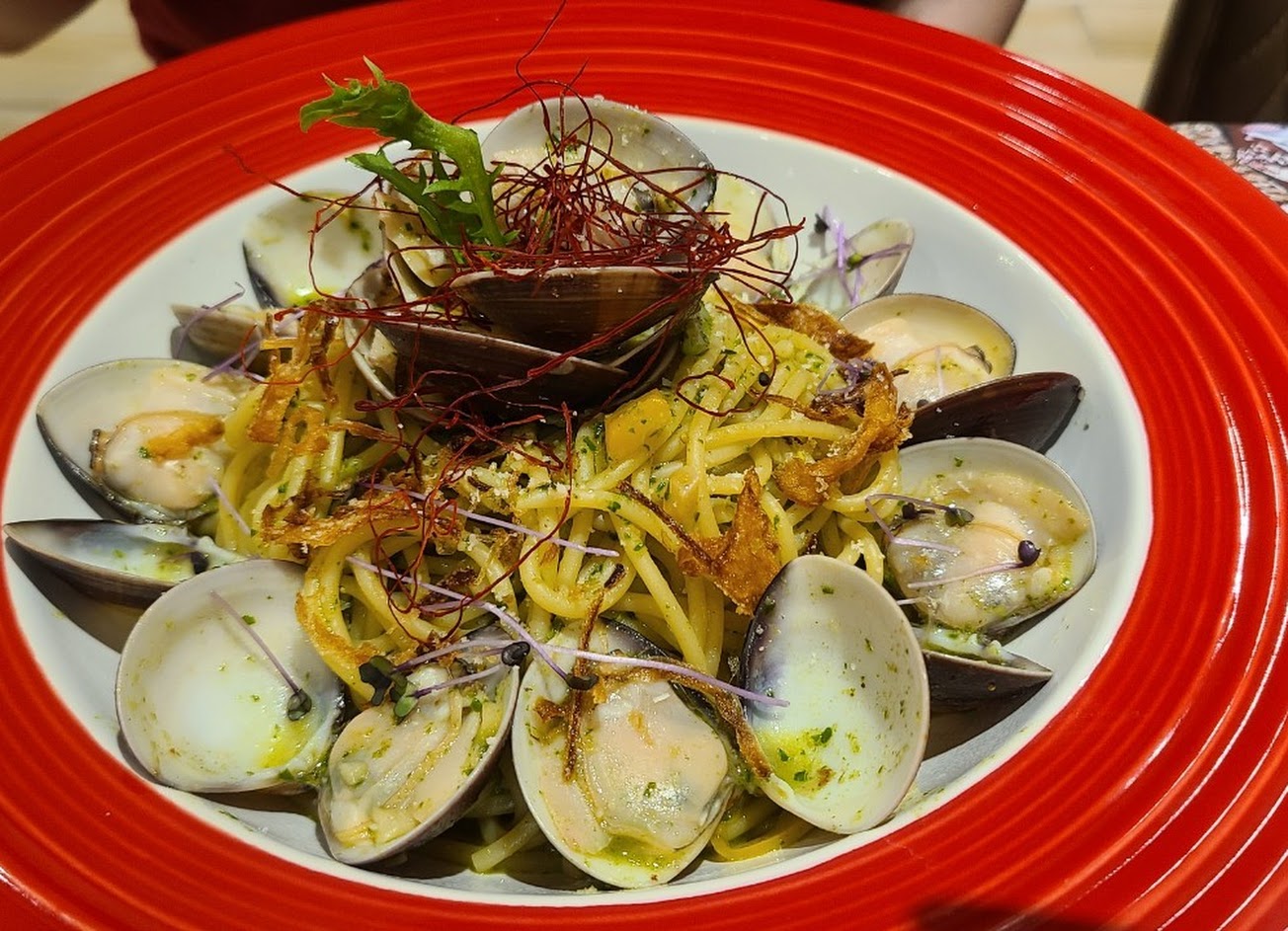 南瓜海鮮義大利麵的蝦子已剝殼像蝦球 義大利麵口感是偏軟的 服務人員亦主動給予盤子裝蛤蜊殼