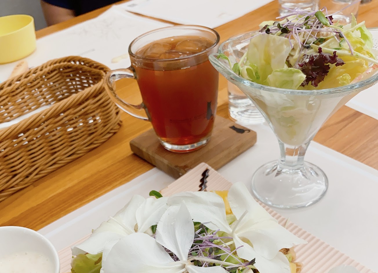 餐點很好吃,野薑花的雞腿燉飯和氣泡飲都很讚,還有可愛的小貓可以互動