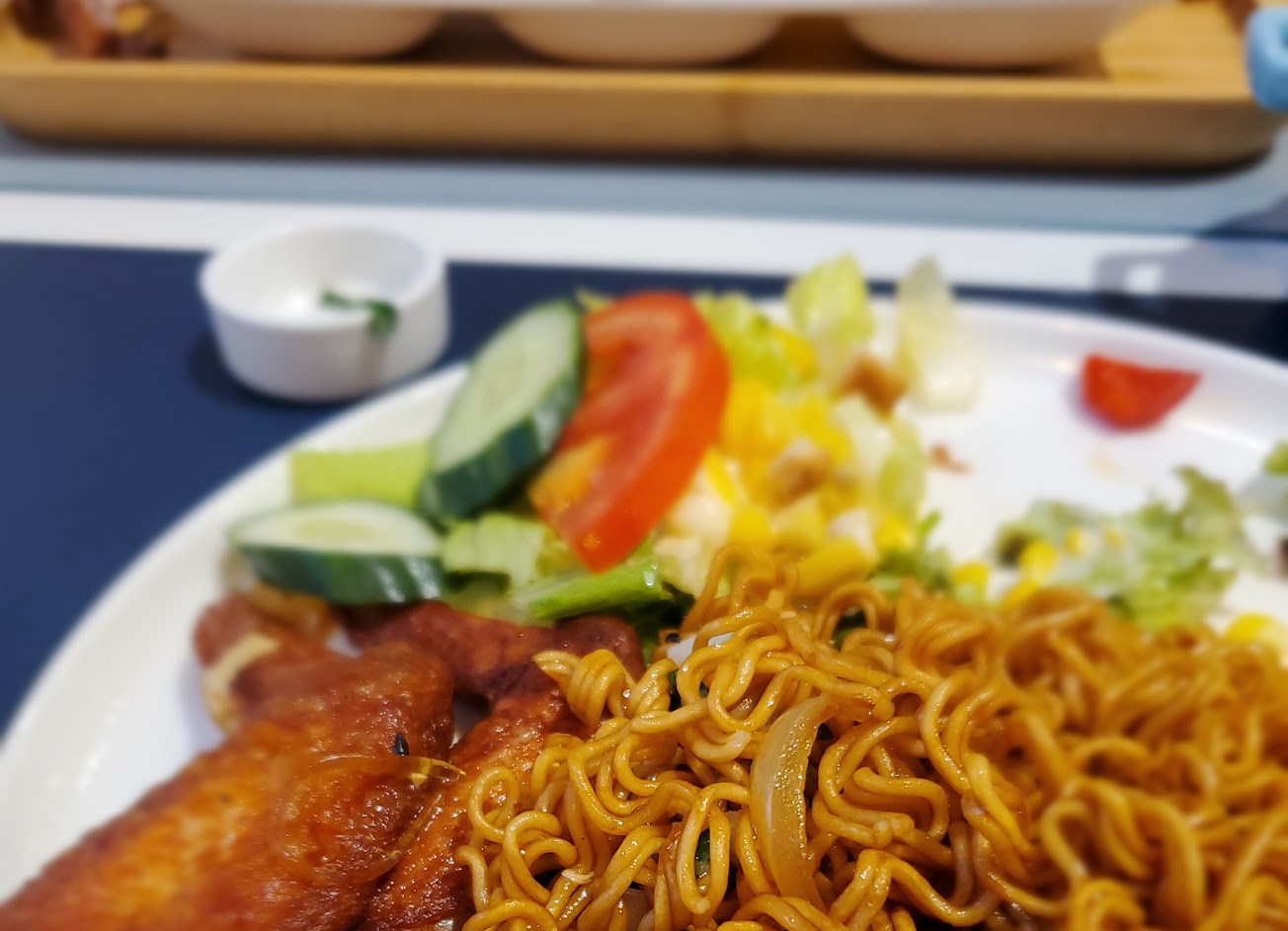 餐點有中上水準,擺盤也美美低~今天吃的魔鬼椒麻炒泡麵有附沙拉解膩滿加分的?價位有點稍高~