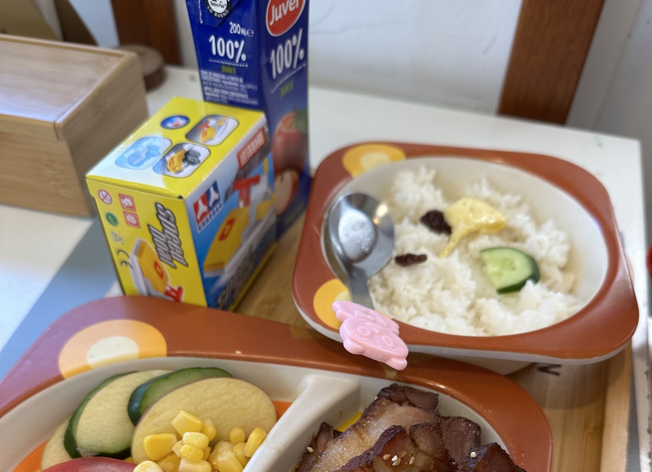 小朋友的兒童餐真的做得很可愛,還有附小玩具誠意十足。兒子也因為放電放得很夠,自己拿著餐具一口接一口很認真的吃,後來還吃光了整碗飯跟叉燒肉,平常他不愛吃肉食的,媽媽真的很感動?